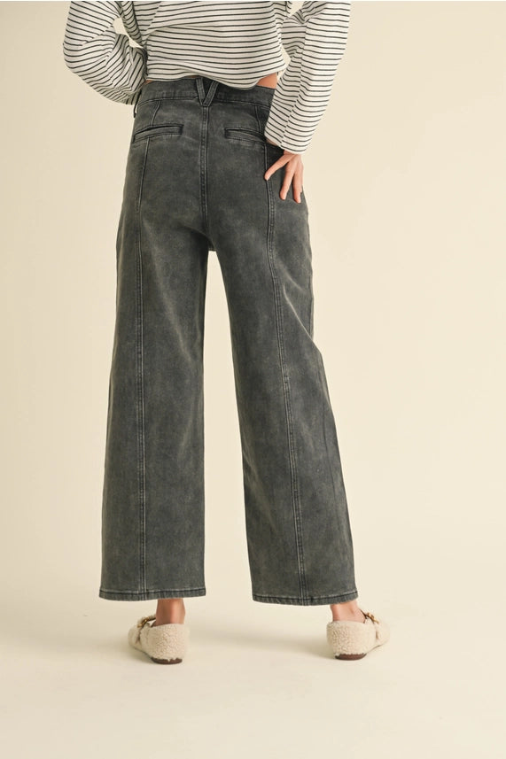 Constructed with stretch for a comfortable and flattering fit, these black paneled wide-leg jeans are a stylish addition to any wardrobe.