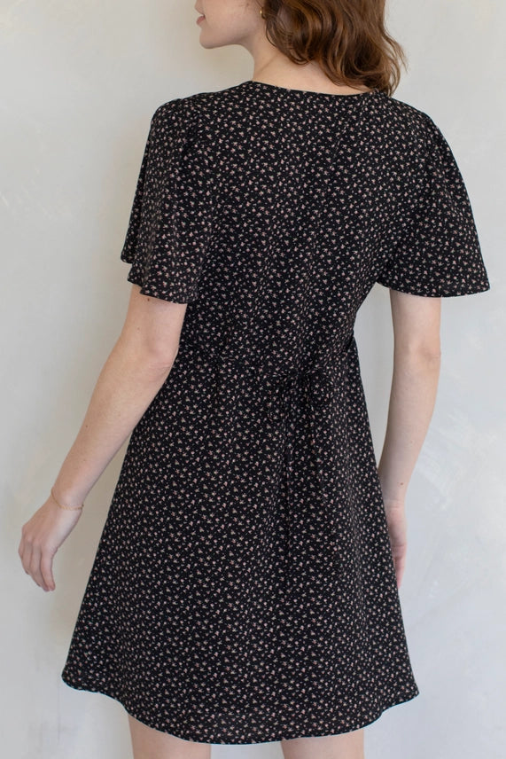 This floral mini dress features a flattering v-neckline and adjustable straps that cinch the waist for a perfect fit.