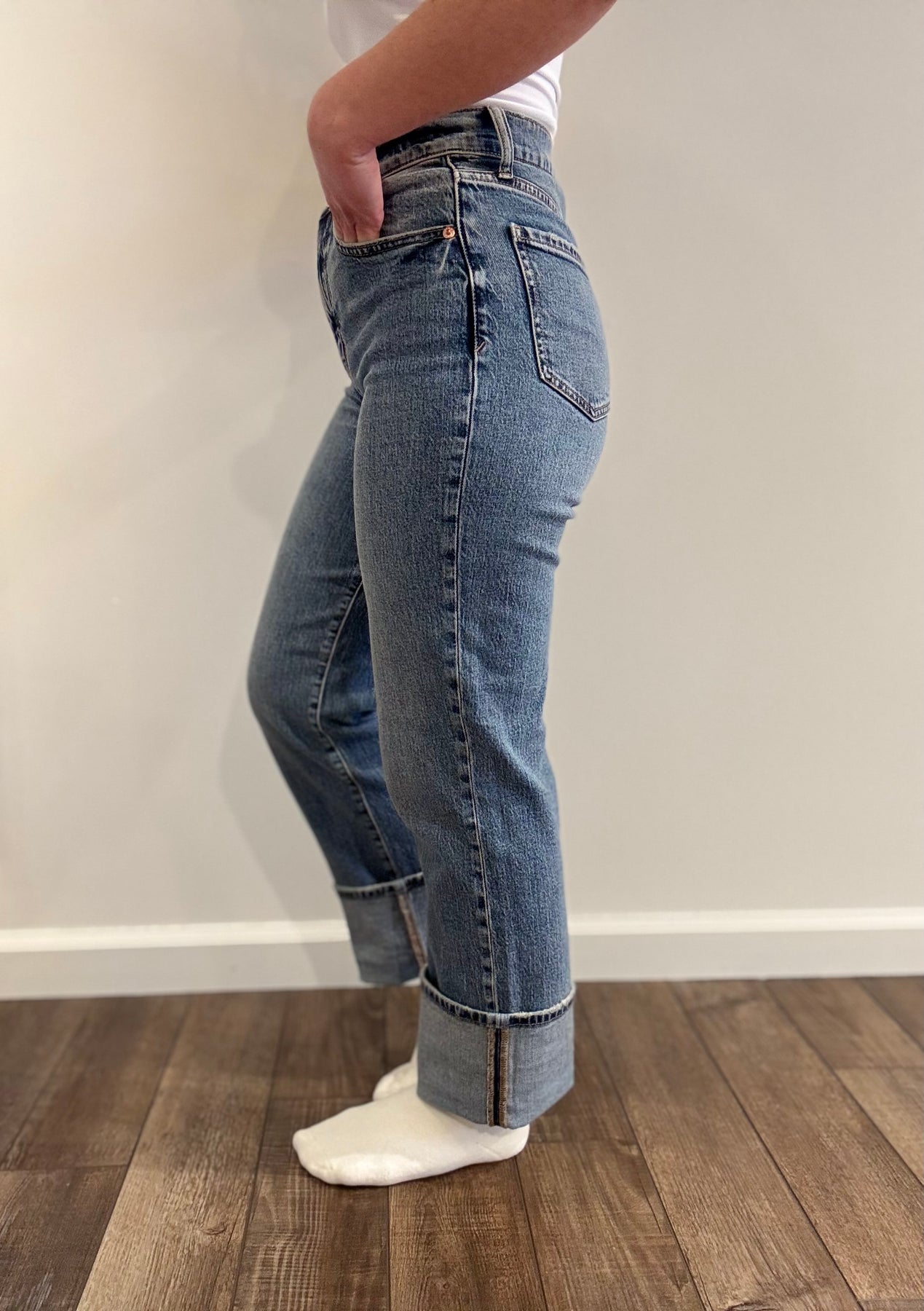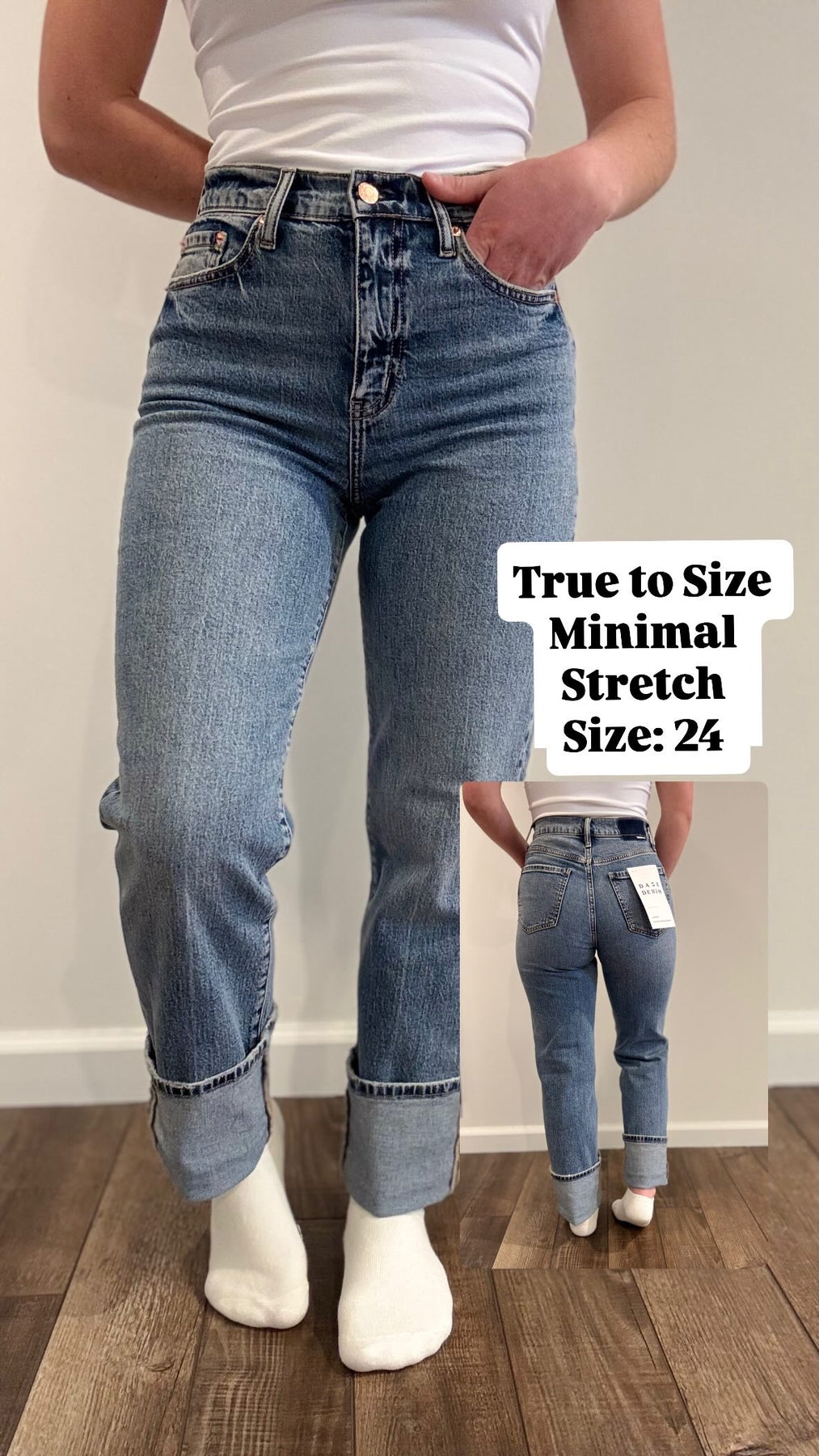Kahlee is wearing the 24 - She has them rolled because she is 5'1'' and she has a shorter inseam.