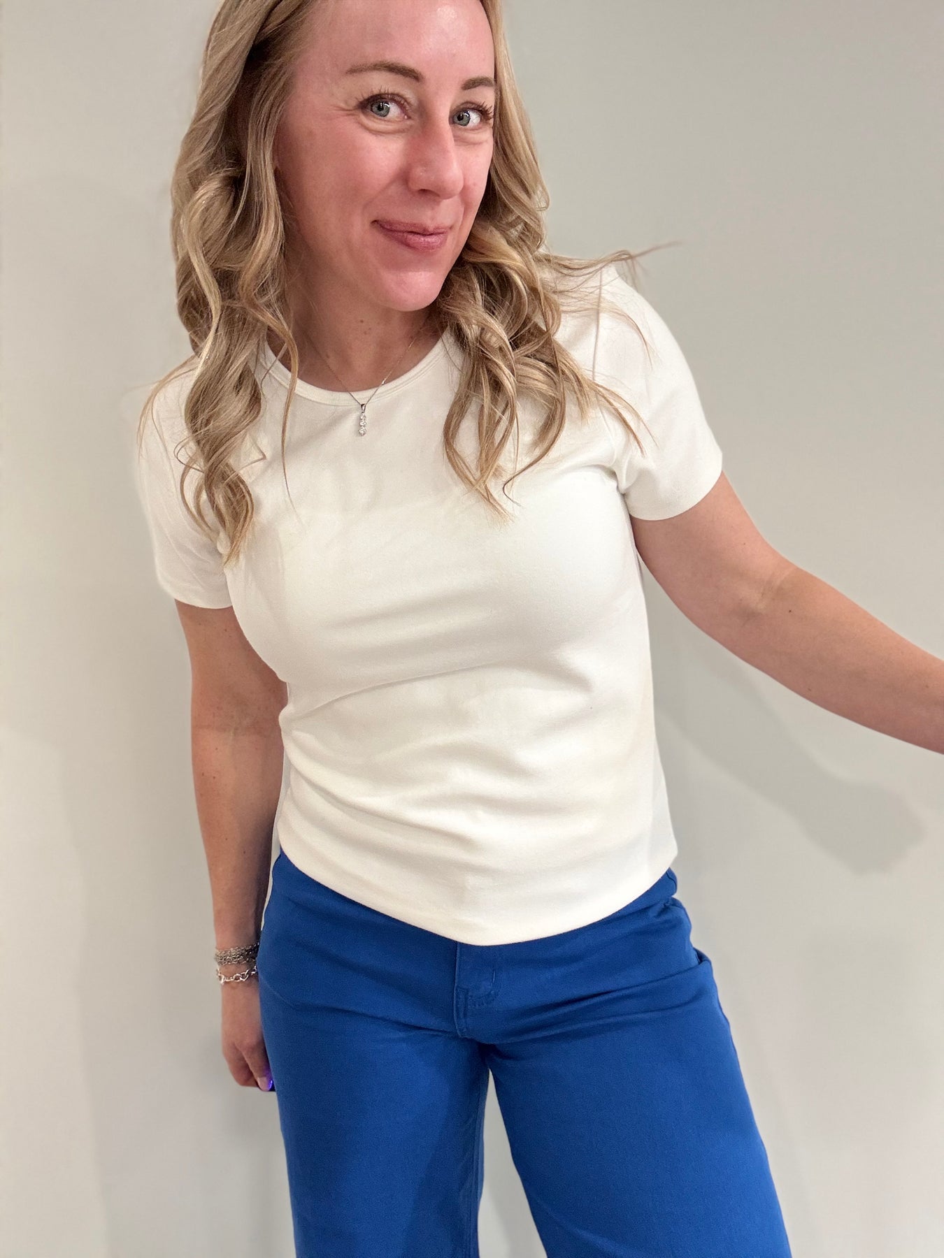 The Frida Top is a form-fitting short sleeve knit made from soft, medium-weight fabric for a comfortable, tailored look. With a simple neck binding detail, it’s a versatile piece that pairs easily with both casual and elevated outfits.