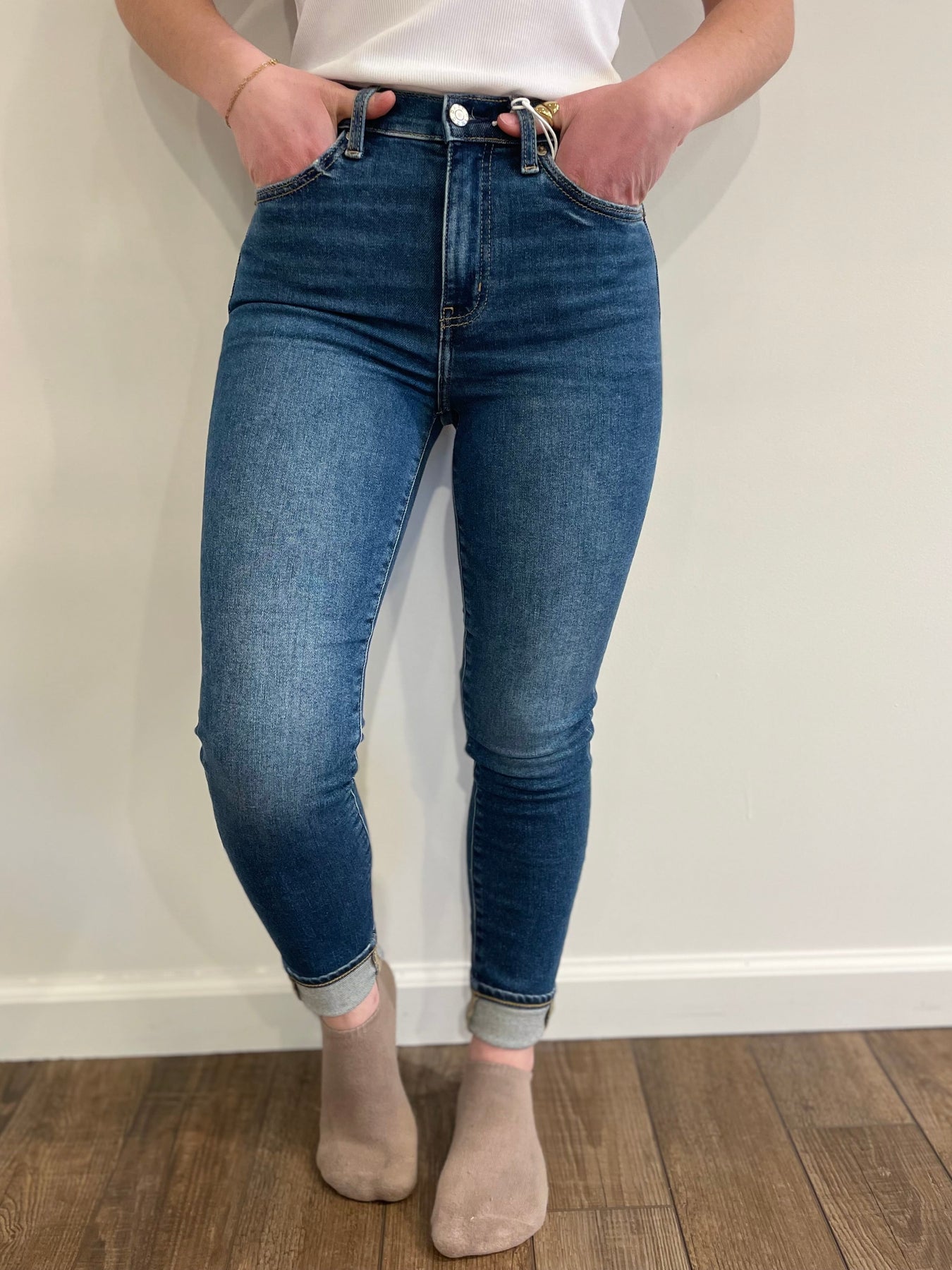 Need a Hug? The Moneymaker Skinny is made using our "Hug" denim. It is a slightly heavier fabric with a stretch that hugs your body, while smoothly cinching you in. In a medium wash with fading, whiskering, and grinding along the knees, this is your go-to for hitting the dance floor.
